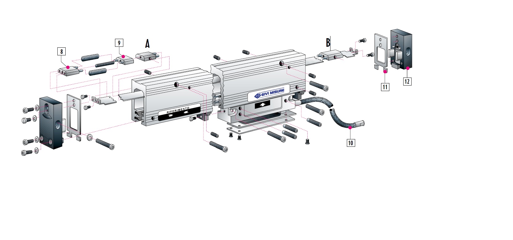 | | | | 尺身堅固: | 1. | 尺殼:TA16陽極處理鋁擠型,一體成型 | | | | 2. | 側(cè)蓋:用來固定尺的兩側(cè) | | 防污設(shè)計: | 3. | 尺頭組:由尺頭座(T)及信號偵測器(P)組成, | | | | 鋼板和墊圈為電路形成防水保護(hù) | | | 4. | 外層防塵橡膠:采用elastomeric 70橡膠富有彈性, | | | | 能迅速密合,防止污染物進(jìn)入 | | | 5. | 內(nèi)層防護(hù)橡膠:多一層保護(hù),隔絕細(xì)小污染物 | | | 6. | 橡膠墊圈:保護(hù)尺身,避免油、水自兩端進(jìn)入 | | 量測準(zhǔn)確: | 7. | 彈性聯(lián)軸器:補(bǔ)償安裝誤差,正確感應(yīng)刻劃線及自我校正機(jī)械遲滯 | | | 8. | 電路板:雷射校正A、B相位,固定電阻信號,穩(wěn)定度高 | | 鋼帶刻劃: | 9. | 不銹鋼刻劃線:單片鋼帶模組化設(shè)計(一體成型) | | | 10. | 鋼帶固定:由兩側(cè)固定于尺殼中 | | | 11. | 自我調(diào)節(jié)補(bǔ)償:彈簧模組可由兩端自動調(diào)節(jié)鋼帶距離差異, 包括容許范圍內(nèi)的安裝誤差及機(jī)構(gòu)的熱膨脹變異, 鋼帶尺膨脹系數(shù)10.6×10-6℃-1 (鋼帶尺熱膨脹系數(shù)與工件和機(jī)械極接近) | | 信號線 : | 12. | 信號線:不銹鋼線編織而成,可保護(hù)信號線,線長可達(dá)50~60M以上 | | | | 不需另外接線(亦可選購管狀保護(hù)線或超軟線) | | 顯 示 器: | 13. | | | | | |
