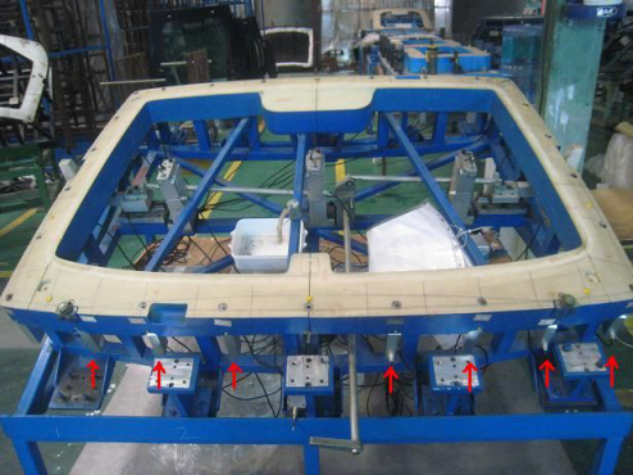 圖片為擋風(fēng)玻璃檢具,紅色箭頭處安裝了測微計 CW 測微計系列規(guī)格類型: 插頭型 CW-141(341)