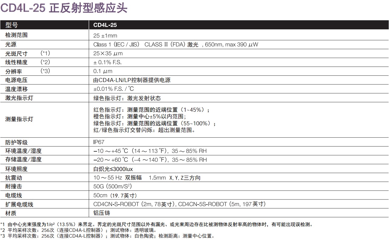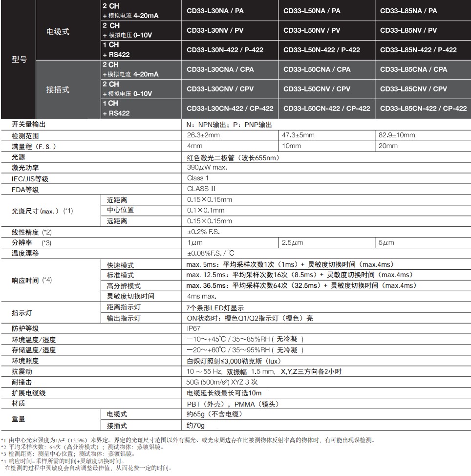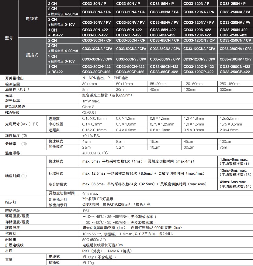 激光位移傳感器CD4系列技術參數: