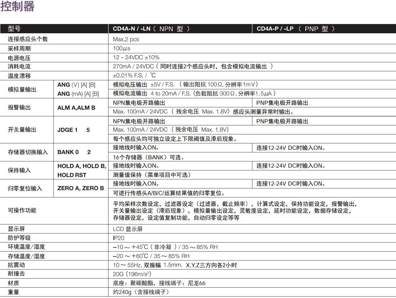 激光檢測儀,激光測量儀,激光位移測量,CD4系列激光位移傳感器CD4-30/ 85/350 CD4L-25 CD4A-N/LN CD4A-P/LP激光位移傳感器CD4系列● 感應頭+控制器,設定簡單,操作方便。● 一個控制器可同時連接2個感應頭。 ● 正反射型(CD4L-25)用于檢測玻璃/鏡面體。 ● 0.1μm高分辨率,±0.1% F.S.高線性精度(CD4L-25型)。