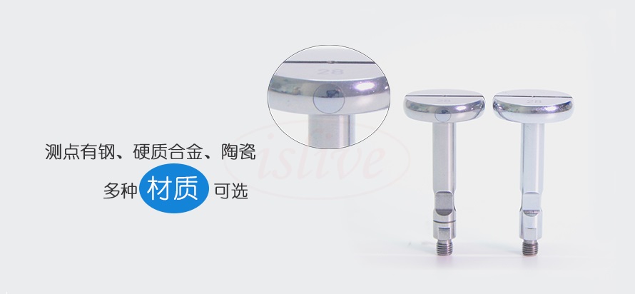兩瓣式測頭一般分為標準孔測頭(碳鋼和硬質合金測點)、陶瓷測頭和盲孔測頭。您可以根據(jù)要測量孔的深度來確定測頭的形式,如果要測量位置非常靠近根部,可以選用盲孔測頭;根據(jù)孔的形式我們還可以非標制作超盲孔測頭;如果要測量的工件比較軟,如鋁、銅等材質工件,可以選擇陶瓷測頭。