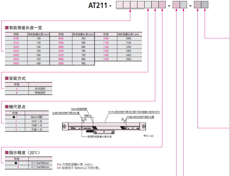 產(chǎn)品介紹AT211系列光柵尺方波輸出型(細長高速型)高精度光柵尺2um/m 產(chǎn)品特點: 1.高精度, 高分辨率封裝型光柵尺,是半導體加工系統(tǒng)和CNC機床在定位時進行反饋控制的理想工具。 2.兩種型號可供選擇:AT211A多點安裝型,增強了防震性能。AT211B可安裝在機床兩端。AT211B的尺寸與 AT111細長型相同。 3.可直接連接控制裝置的細長型屏蔽型光柵尺。 4.支持0.1-5um的大范圍分辨率,可實現(xiàn)120m/min的高速響應 5.多點固定型是實現(xiàn)了高耐振性的規(guī)格4.配備光柵尺報警顯示功能,易于維護 6.可根據(jù)使用目的選擇光柵尺的增規(guī)格項目選擇方式 技術參數(shù):