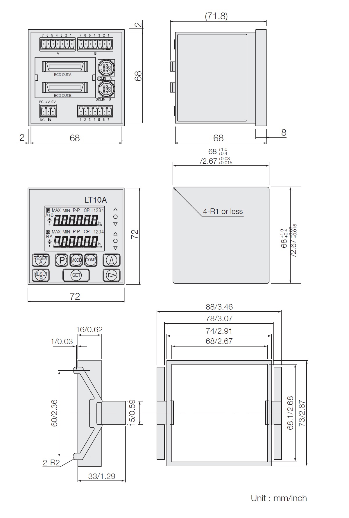 1.小尺寸:德國DIN標準(72mm*72mm/2.83"*2.83" W*H)