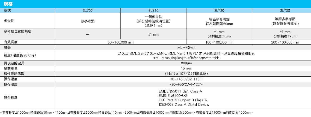 有效測量長度從50 mm至100,000 mm