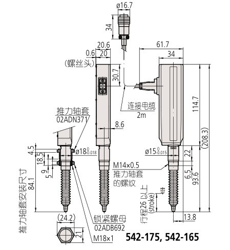 日本三豐LGF線性測微計542系列—帶有原點標識的經濟型設計542-166,542-165,542-164,542-176,542-175,542-174